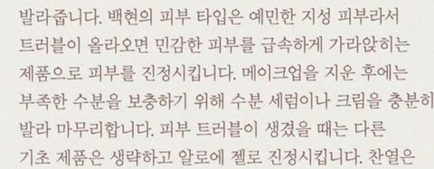 메이크업 아티스트에 의하면 백현은 예민한 지성피부