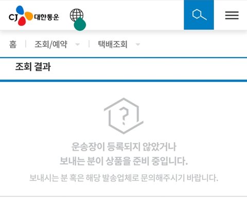 발송완료떠서 송장번호로 택배 조회하는데 이렇게 떠ㅠㅠㅠ