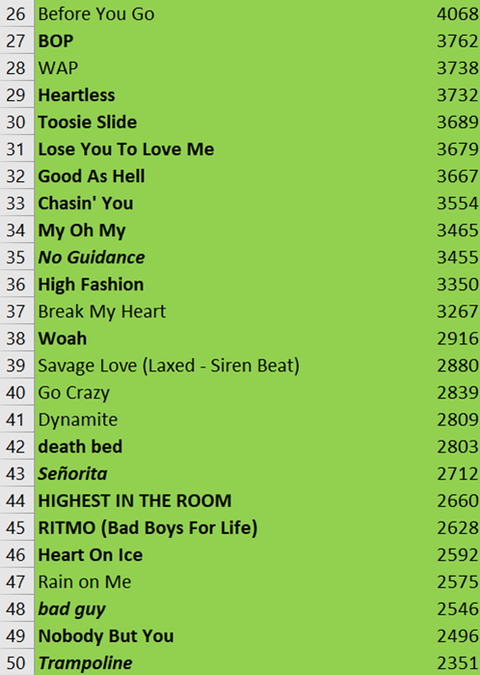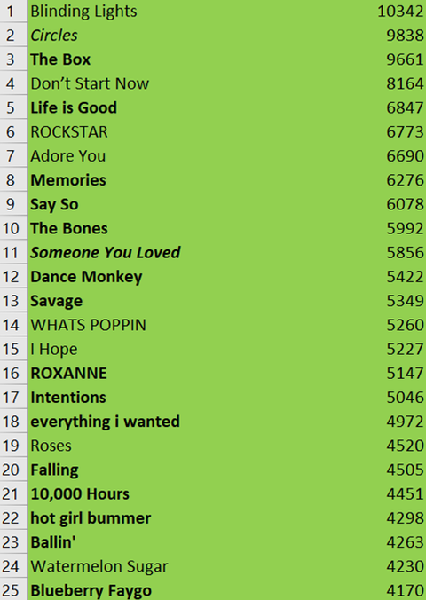 참고로 1위는 역시 위켄드의 blinding lights... 예상은 했지만 역대급 대박이네