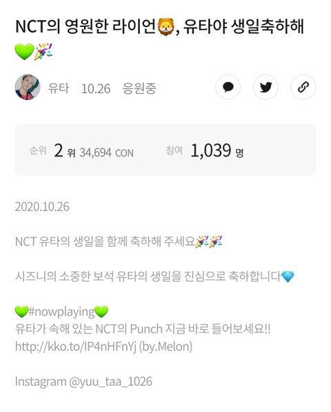 유타 생일보드 얼마 안남았는데 역전당했어 ㅜㅜ