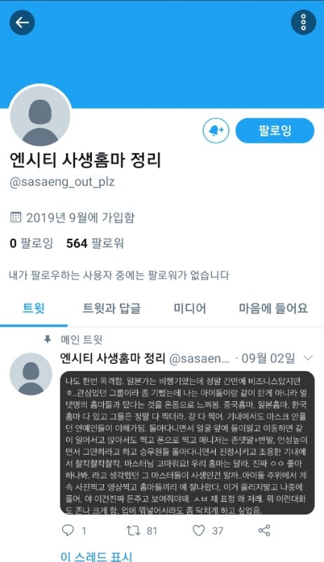 진짜 말로는 엔시티 사랑한다 간이고 쓸개고 다 줄것처럼 하면서 왜 애들 힘들게 하는 사생을 소비하는거야.물론 사진 동영상 잘찍는거 알지 근데 사진 잘찍는 것보다 애들 사생활이 먼저잖아 .