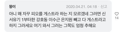 게스트얘기만 나오면 달려들어서 고정멤버 게스트화