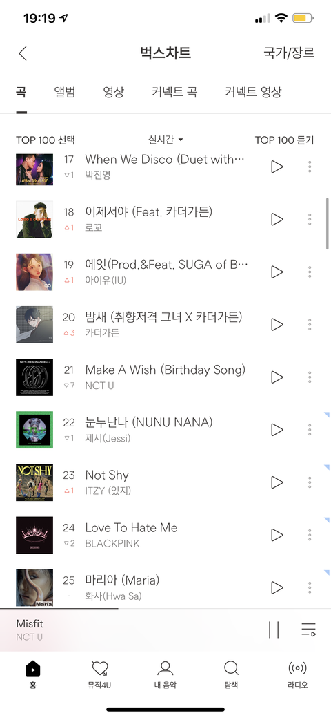 오전 8시 ㅠㅠ21위야... 얘들아 순위에 절대 만족하지말구 열스 숨스 하쟈 난 1위가 목푠데 ㅋㅋㅋ 2위가 최대ㅠㅠ 다들 열심히 하는 거 알지만 순위가 가면 갈수록 계속 뚝뚝 떨어지네 ... 스밍 끊겨서 그런 것 같은데 한 번만 확인해주고!! 좀만 더 힘내즈아