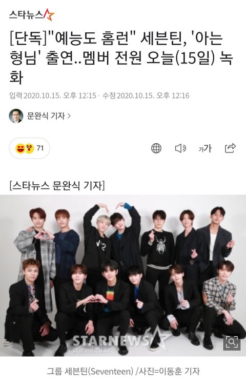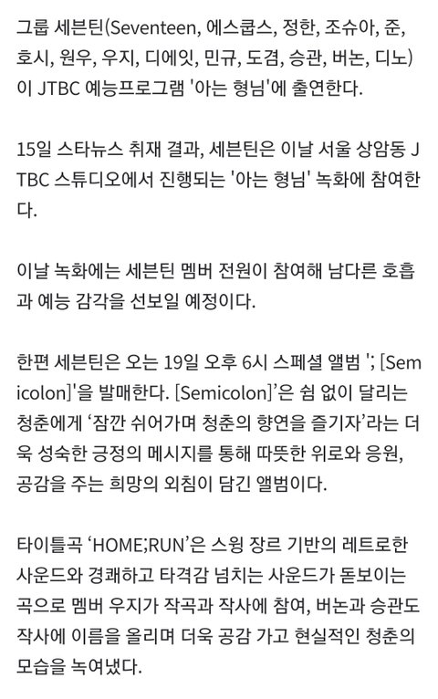 세븐틴 아는형님 나온대