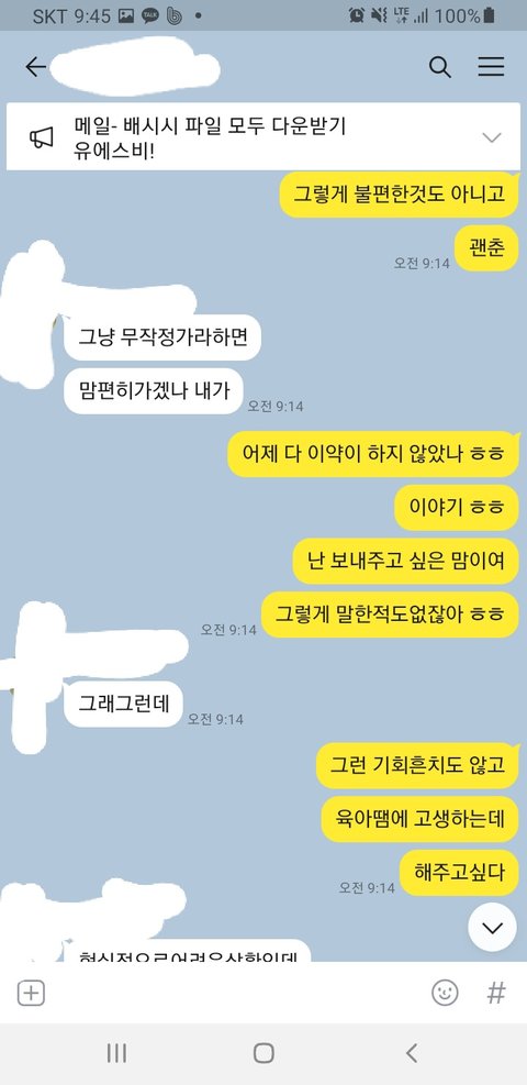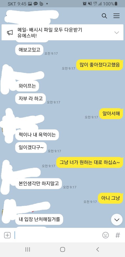 이틀전, 와이프가 토요일에 당일치기로 친구들과 놀고 와도되겠냐고 물어봤었고, 저는 흔쾌히 차라리 금요일 저녁부터 일요일 낮에 놀다 와라 내가 애기를 보겠다고 했습니다. 하필그때 제가 눈에 다래끼가 난 상황이었지만 금새 나을줄 알았습니다. 하지만 금일까지는 좀 불편한 상태인 상황입니다. 그래도 서울쪽 대학친구들을 만나고 싶다는 말에 이런기회도 없을거같아서 걱정하지말고 가라고 한 상황인데... 와이프는 저한테 뭘 요구하는건지 그리고 왜 욕을 하는건지 전 알수가 없네요.