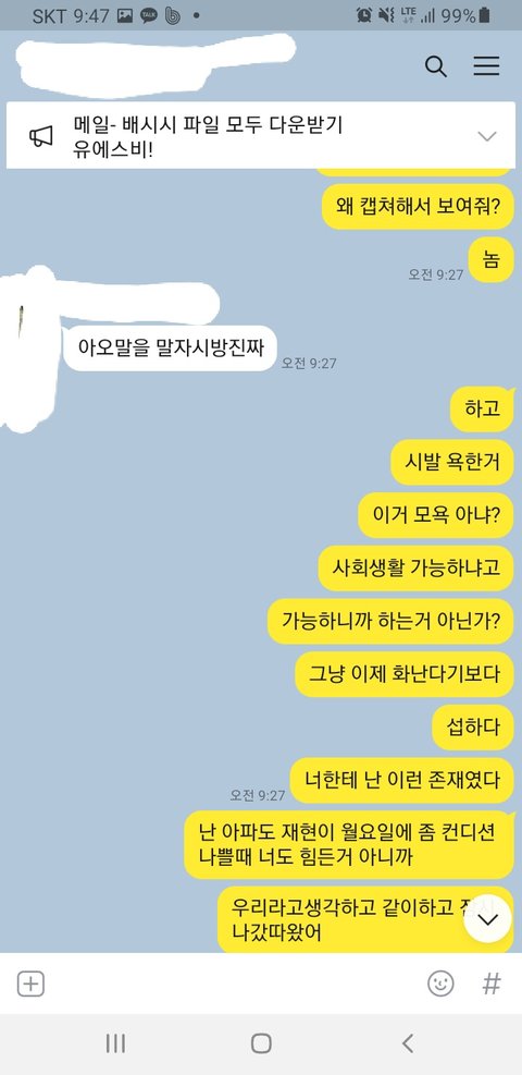 같은 여자로써 글읽고 진짜 속터져서 보는내내 제가 열이 다 받네요. 못배운사람도 인성이 된다면 저러지않을껀데, 와이프분은 못배운데에 인성까지 없으신듯요. 읽는내내 제가 마음이 다 아프네요. 왜 저런대접을 받고 계신건지.. 혹시 뭐 바람피우거나 뭐 꼬투리 잡혔던거 잇으신가요? 그런거 아니라면. 그냥 와이프분 인성이 저런거라면 그냥 갈라서심이 좋으실듯요. 저렇게 무시하는거.. 솔직히 고치기 힘듭니다.내가 내 남편을 아끼지않고 존중하지않는데.. 내 자식 주변사람들이 나를 아껴주고 존중해줄까요??