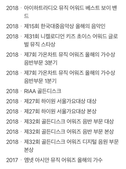 방탄 이때까지 상 받은 거 볼 사람 ㅋㅋㅋㅋ