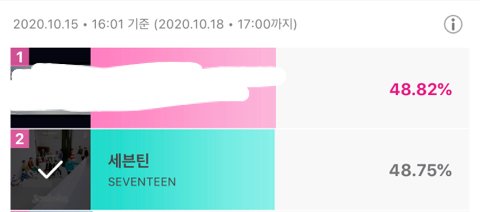 0.07차이ㅜㅜ 계속 순위 왔다갔다하는데 잊지말고 투표하자!!