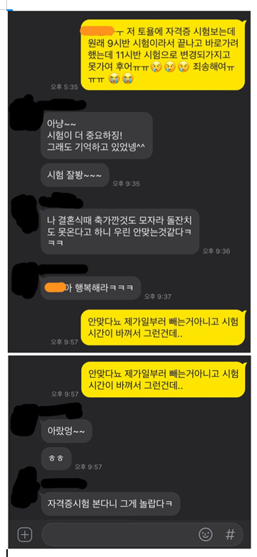 그런데 뭔가 자신도없고 긴장해서 못할꺼같고 결혼식 괜히 나때문에 망칠꺼같고 고민많이하다가 일주일뒤에 장문으로 너무죄송하다고 보냄 (처음부터 안한다고 했어야했는데 .. 명백히 내 잘못)