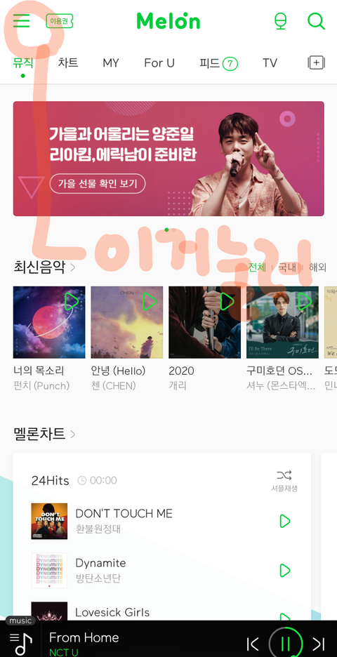( 설정>알람>시간 설정 ) 하면 끝 약간 스밍 끊기는 것 같은 시간대에 알람 설정 해놓으면 설정해논 시간대에 노래 재생된당! 사진에 누르라고 한거 누르면 자기 이름 옆에 설정 나올거야!! 즈니들 열스..! 화이팅