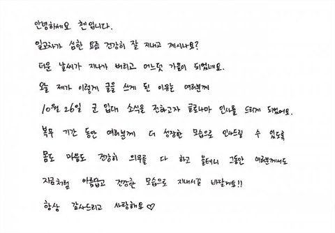 큥이 10월 26일 입대한대