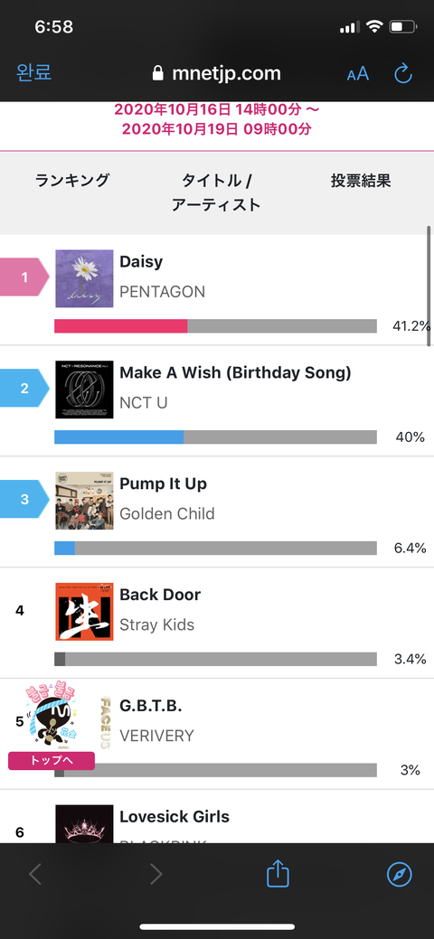 방금 일본에서 엠넷 투표율 보고 왔는데 펜타곤이 1등이여..