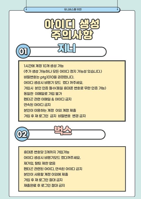 근데 특히 벅스아이디가 너무 부족한 상황인것같아ㅠㅠㅠㅠㅜ아직도 지니 아이디 10개, 벅스아이디 3개 안만든 유니 없겟지???