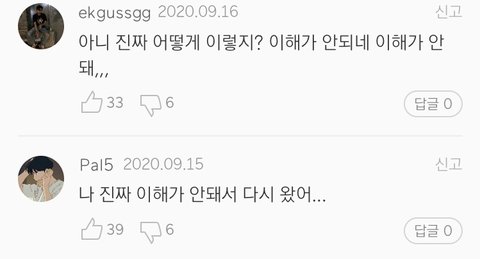 사람들 다 똑같이 저 부분 외치고 있는게 신기해 하이라이트도 아닌데 어쩜 다들 똑같이 이해가 안된다 할 수 있지?? 나도 이해가 안되긴 해