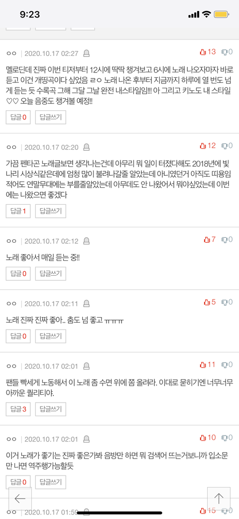 저기 톡선 3위에 잇는 우리 영업글 댓글을 봐... 거기보면 진짜 우리애들 노래좋다는 칭찬 차고 넘치고, 팬들 이번 노래 그냥 보내지말고 빡쎄게 돌려서 좀 수중위로 올리라는 타팬들 글이 수두룩해!!! 영업글에 이런 반응 특히 판 내에서 진짜 쉽지 않은거 알지?! 우리 진짜 이번 노래 그냥 보내지 말자 꼭 잡자!! 투표랑 스밍 총공 아이디 기증 잊지마!! 제발!! 울 애들은 포기 안하는데 유니가 먼저 그 손 놓으면 안되잖아!