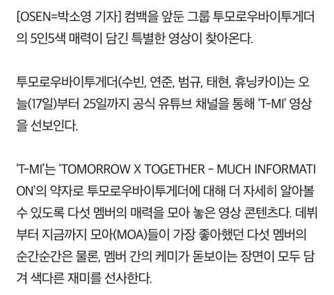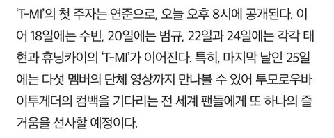 오늘부터 오후8시 TXT 의 TMI공개