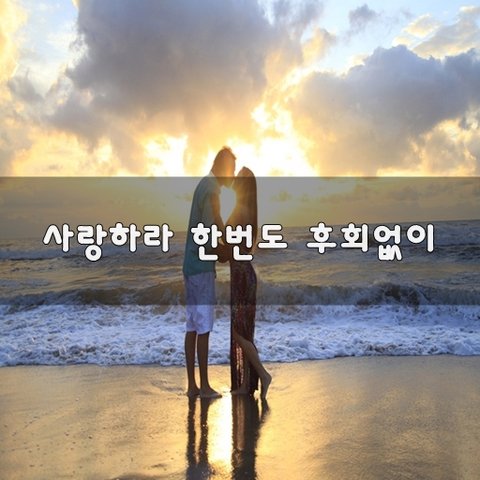 ♥ 사랑하라 한번도 후회없이 ♥ 사람은 무엇으로 사는 존재인가?사람은 사랑으로 사는 존재이다. 우리는 서로 사랑하고,사랑받을 때에가장 큰 행복을 느낄 수 있다. 죽을 때에 가장 후회하는 것은명예를 다 얻지 못함도 아니요,돈을 많이 가지지 못함도 아니요, 오직 사랑을 다 하지 못함을후회하게 된다. 사랑 할 수 있을 때에아낌없이 사랑하라.간절히 후회 없이 사랑하라. 모든 것이 허무하게 느껴질 때에사랑만은 남는 것이다. 우리는 서로 사랑하며 살아 갈 때에가장 충만한 삶을 살게 된다. 우리는 사랑에 빠져 있을 때에가장 충만하게 살아 있습니다. - 좋은글 中 -