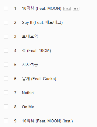 (오스트랑 콜라보곡 제외)