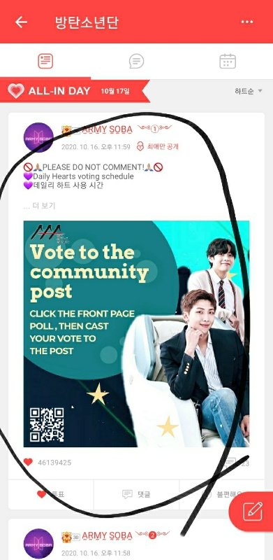 독려계가 아미소바 1등 게시물에 툽 하라는데 이 글 말하는거야??