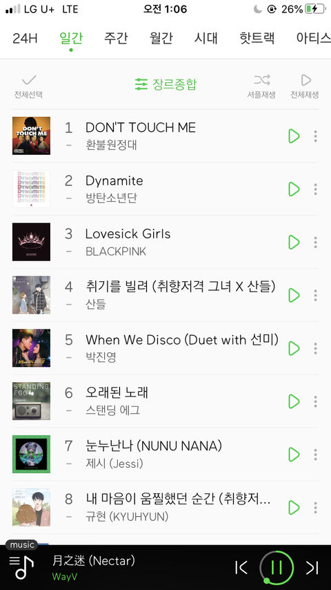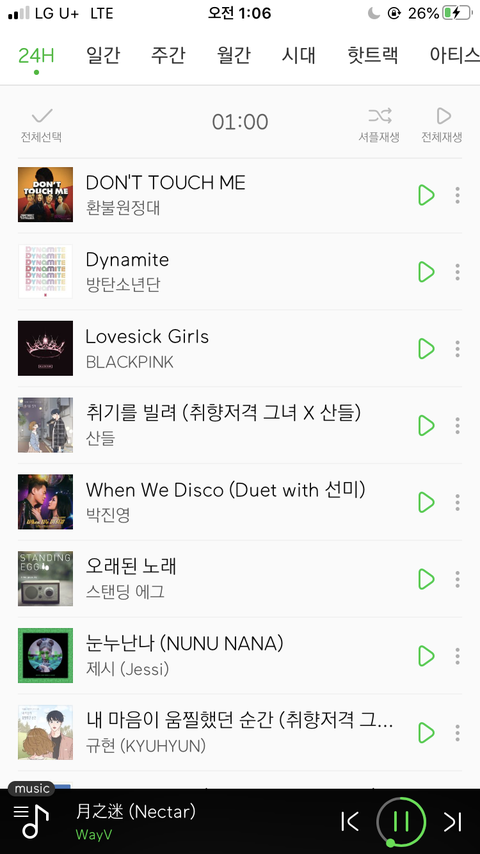 이렇게 24hit 차트?인데