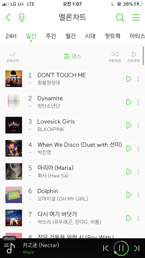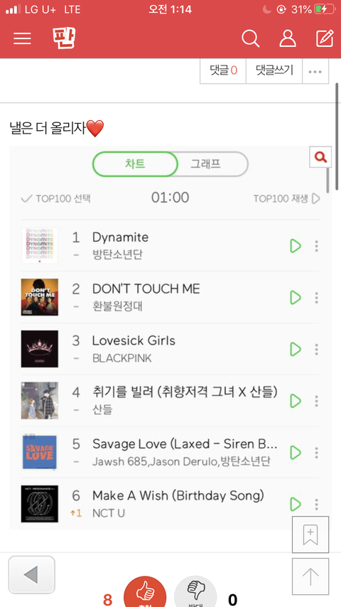 차트 상위권에 위치한 거 캡처 사진이
