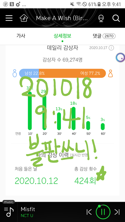 10시 맞춰 올리려고 스밍 횟수 미리 캡쳐했어 양해 부탁해!