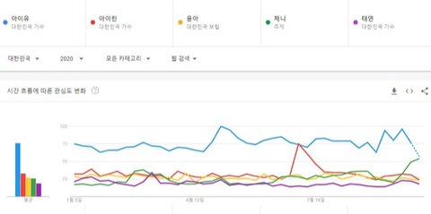 2020년 여자아이돌 개인 검색량 TOP5