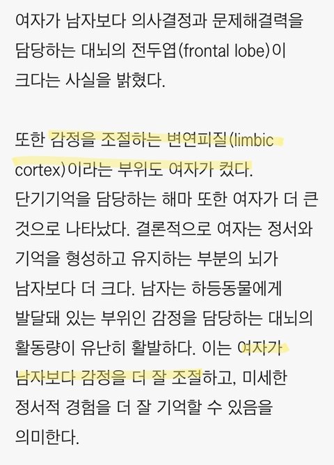 감정조절담당 부위 여자가 더 큼