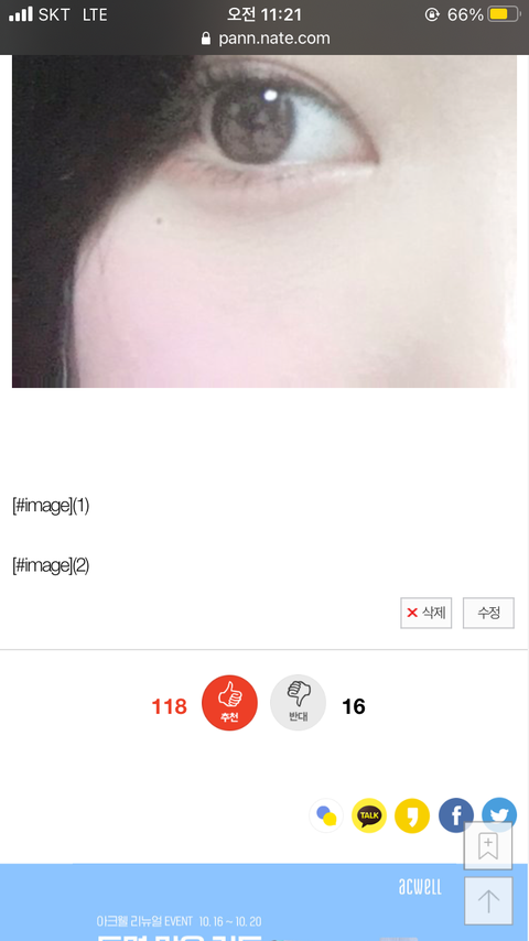 암튼 내가 요번에 쌍커풀이 자주 풀리고 맘에안들어서 쌍수 했는데 쌍수 후 메이크업 다시올려볼까 해... 혹시 올리면 봐 줄 아가덜 있니..?