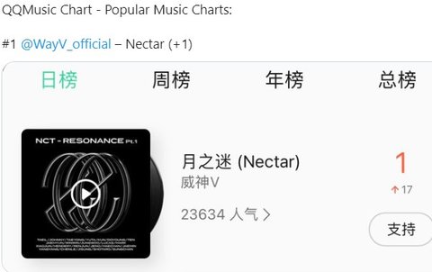 큐큐뮤직 일간이랑 주간 인기차트 1위래!