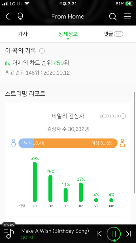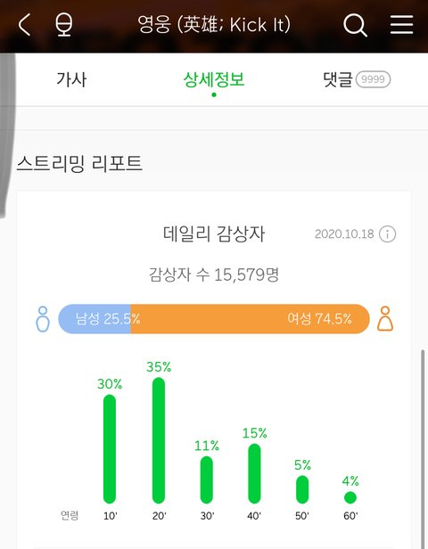 영웅 이용자수랑 딱 두배차이나.......아니 우리 지금 프롬홈 스밍하느라 아마 지금 영웅 듣는건 머글분들일텐데....진짜 이정도면 우리 그냥 전체적으로 이번 앨범 스밍 잘 안하고 있다는거 아니야??심각해 진짜........ㅠㅠ왜 맨날 하는 애들은 계속 열심히 하고 안하는 애들은 들은 체도 안하냐고ㅠㅠㅠ