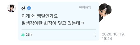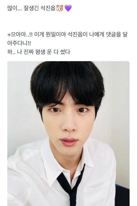 용량 초과되서 김석진 생얼 짤 댓글로 더 풀게