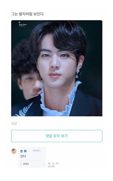 팬이 쓴 글에 석진이가 단 댓글