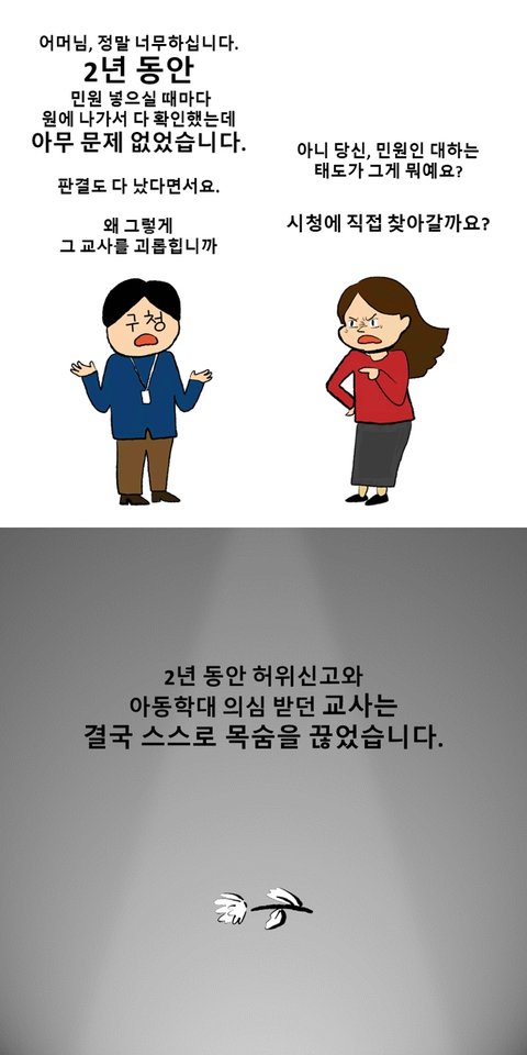 청원 동의하고 왔습니다. 너무 가슴 아픈 일이네요. 교사에 대한 존중이 지켜지는 나라였으면 좋겠습니다