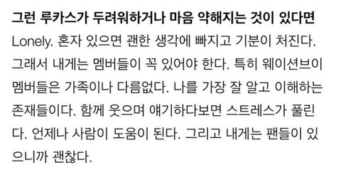 이번 ㅅㅍㅇ 엘ㄹ 루카스 인터뷰 내용인데 직접 응원해줄 수 없는 지금 상황에서 외롭다고 못느끼게 우리도 열심히 하자..정말....
