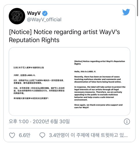 웨2션 관련해서 올 6월에 웨이bo 안티들때문에 난리 난적 있어서 웨2션 레이블 라벨브이에서 중국 네티즌 대상으로 고소공지 띄운적 있었어.. 영어 공지도 띄웠었음