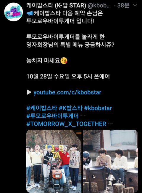 케이밥스타 짹 다음 예약손님은 투모로우바이투게더 입니다!