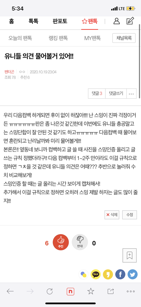 어제 의견은 이렇게 나왓어! 담 컴백부터는 우리 이거 규칙으로 하자 일주일간 스밍사진 하고 추가할 사진 밑에 추가하는걸루