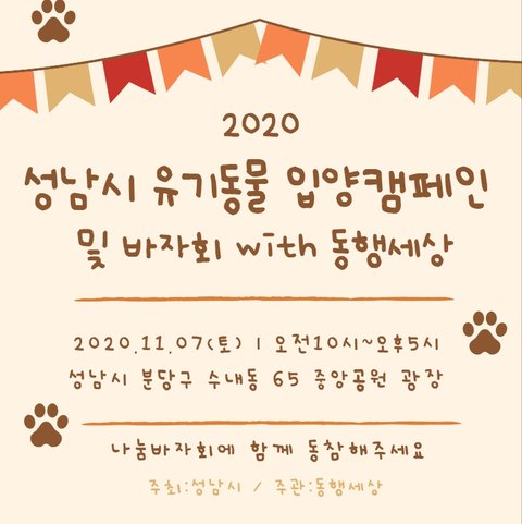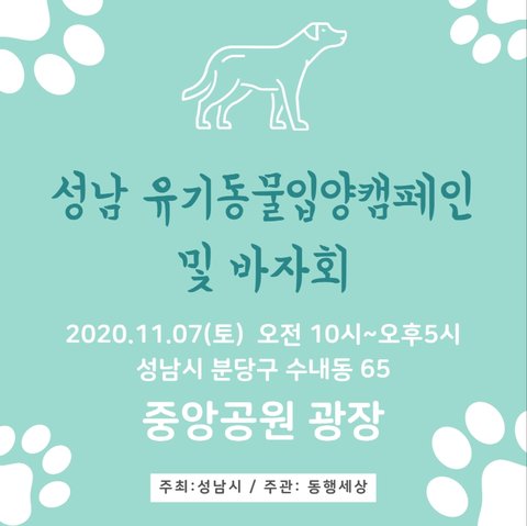 이번 행사를 통해 유기동물에 대한 인식변화를 기대하고, 나아가 유기동물 입양을 함으로써 성숙한 반려 문화와 생명 존중의 가치 확산에 많은 기여를 할 수 있었으면 좋겠습니다.