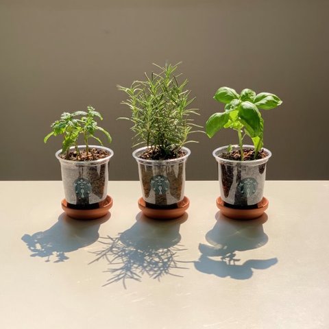 왼쪽부터 스피아민트, 로즈마리, 바질 입니다