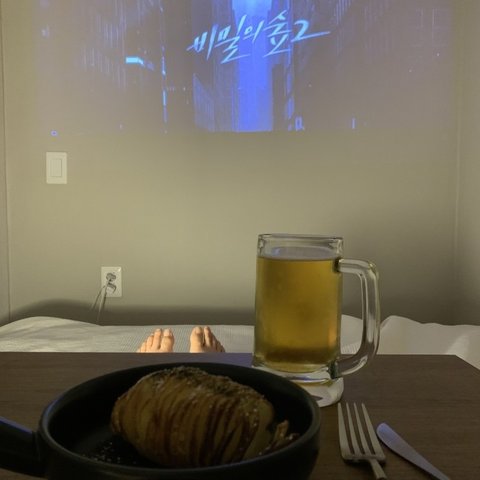 몰래 침대로 가져와서 비밀의숲을 보며 먹었슙니다