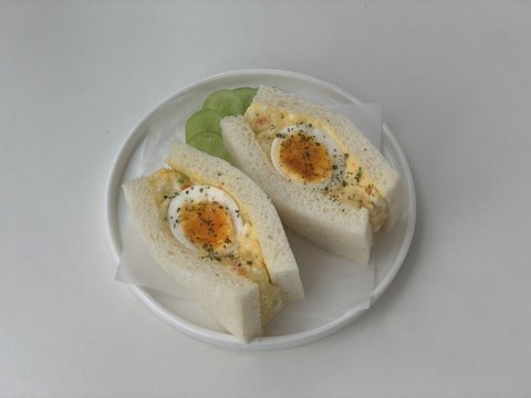 재료: 식빵, 홀그레인 머스타드, 아보카도, 적양파, 파프리카,크래미,마요네즈,후추,계란,로메인