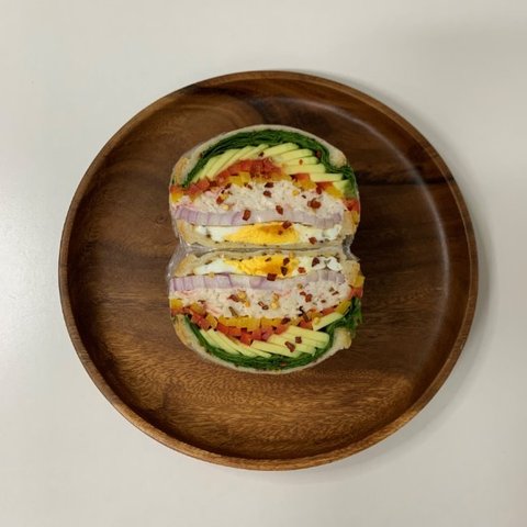 4. 홀그레인바른 식빵-계란후라이-양파-크래미-파프리카-아보카도-로메인-식빵