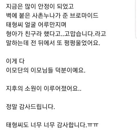 답장을 보고 형이 생겼다고 소원이 이뤄졌다고 좋아서 아이가 펑펑 울자 고마움에 엄마도 펑펑 우셨다고...