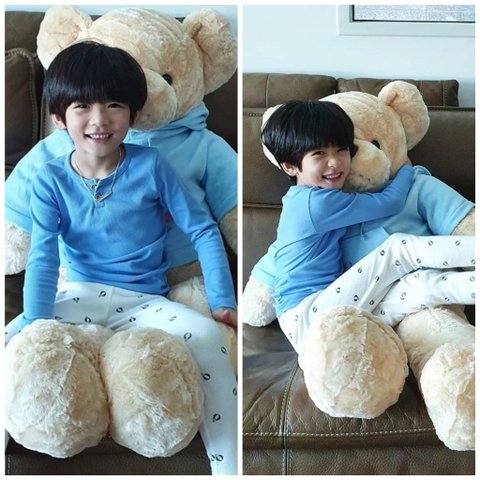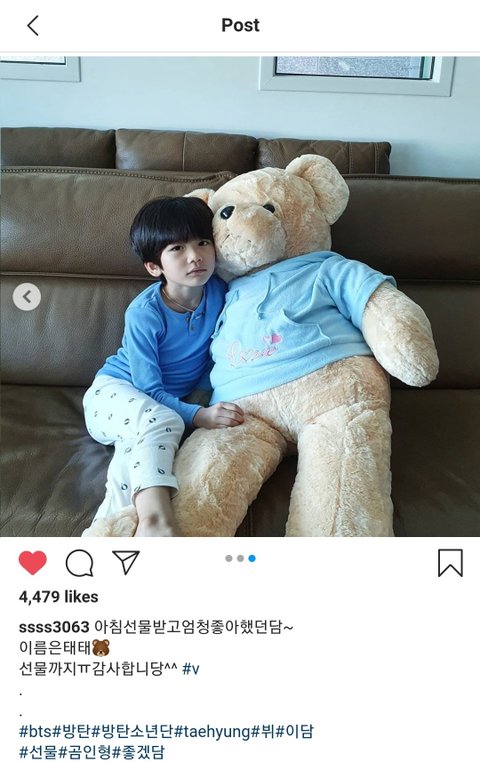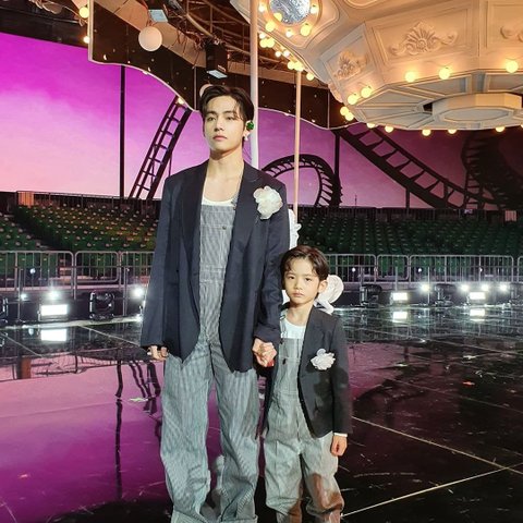 뷔가 콘서트 때 이너차일드 무대를 같이 한 아이모델에게 곰인형을 선물했어