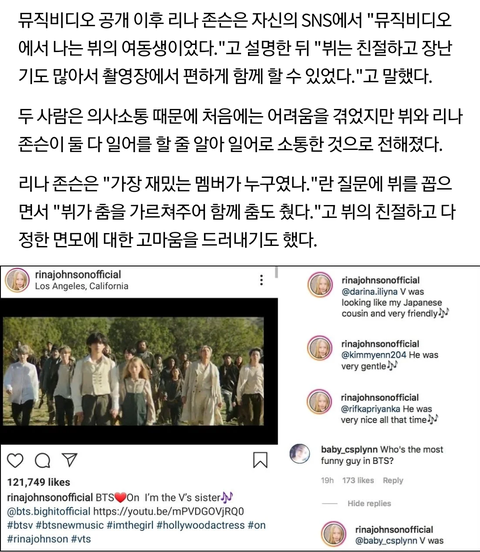 온뮤비 때 같이 촬영한 아이모델은 뷔랑 일본어와 영어로 대화
