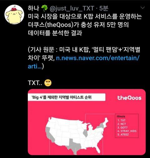 미국내 K팝 멀티팬덤+지역별차이 뚜렷 TXT는?