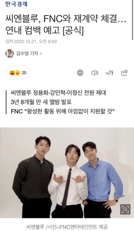 씨엔블루, FNC와 재계약 체결…연내 컴백 예고