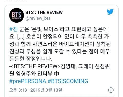 팝페라 가수 임형주 방탄소년단 보컬라인 평가