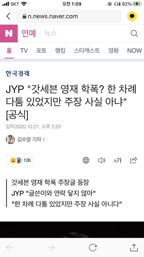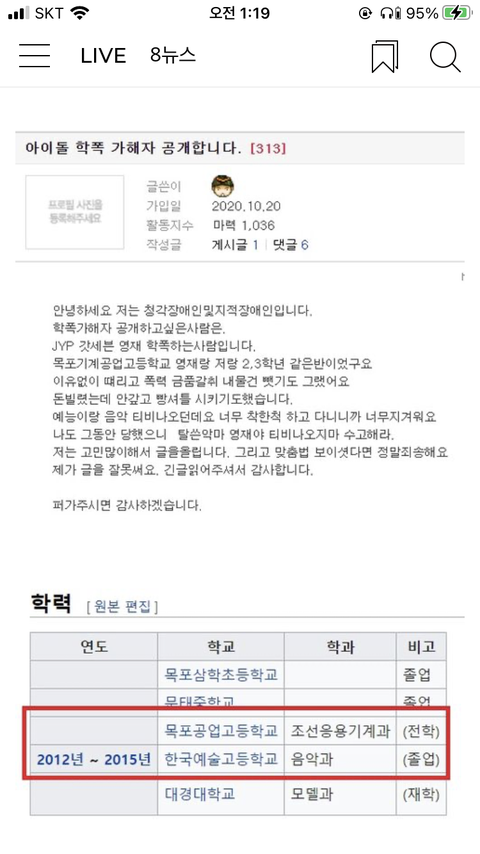 갓세븐 영재 학폭가해자 주장글 본사람 있어욤? 없을까봐 사진 첨부해영